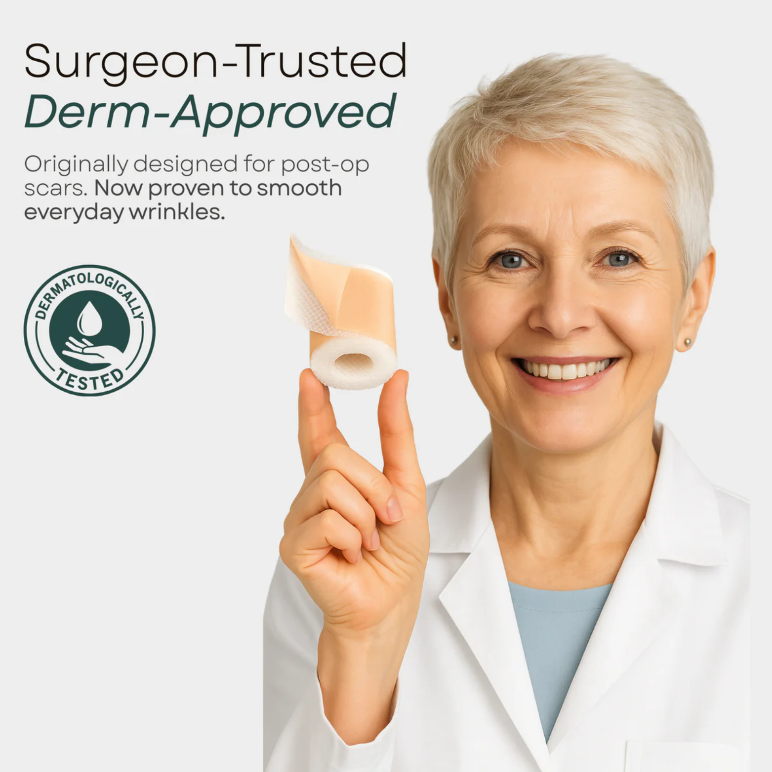 A continuous silicone roll you trim to fit any wrinkle, scar, or contour for a personalized smoothing treatment.